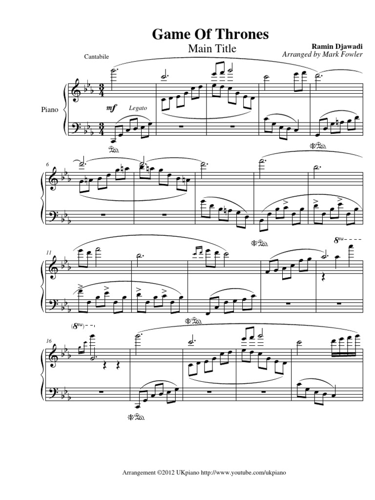 Very simple implementation quickly made by me just because i had not found scores on internet. Download or print the pdf sheet music for piano of this film score, soundttrack and theme song by ramin djawadi for free. Since i am a huge fan of ramin djawadi, i did an arrangement of his main theme from the game of thrones soundtrack. Game of thrones (main theme).mscz (51.7 kb).