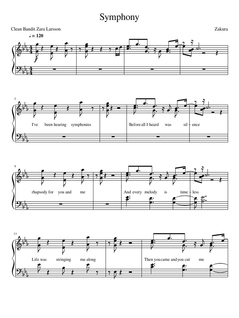 For voice and piano (or guitar). 862 views, added to favorites 165 times. Sheet music pdf piano sheet music music sheets clean bandit violin music music score music notes music stuff song lyrics. Symphony is a song by british classical crossover band clean bandit featuring swedish singer zara larsson.