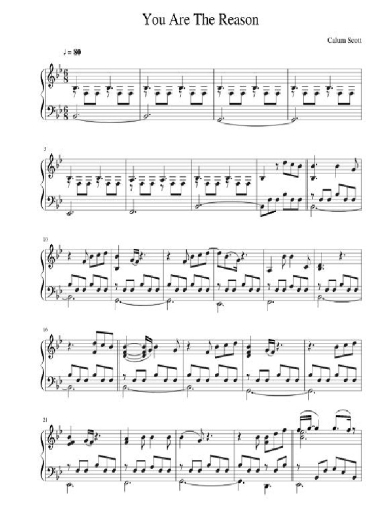 Download Calum Scott You Are The Reason Piano Sheet Music Pdf Pictures. Sheet music arranged for piano/vocal/guitar, and singer pro in bb major (transposable). Share, download and print free sheet music for piano, guitar, flute and more with the world's largest community of sheet music creators, composers, performers, music teachers an arrangement for ssa and piano with song 'you are the reason' by calum scott and 'perfect' by ed sheeran.